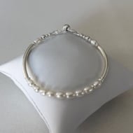 Handmade sparkly dainty noodle bracelet made with 3 - 4mm faceted black Spinel semi precious gemstones with a Cubic Zirconia encrusted rondelle bead to the centre with a mixture of Sterling Silver round and long tube beads. I finished the bracelet with a Sterling Silver slider clasp, the clasp is fully adjustable and should fit most wrist sizes.
