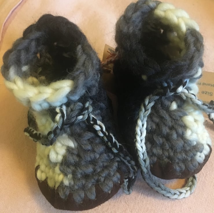 Soft, chunky Norwegian wool hand crafted baby boots.