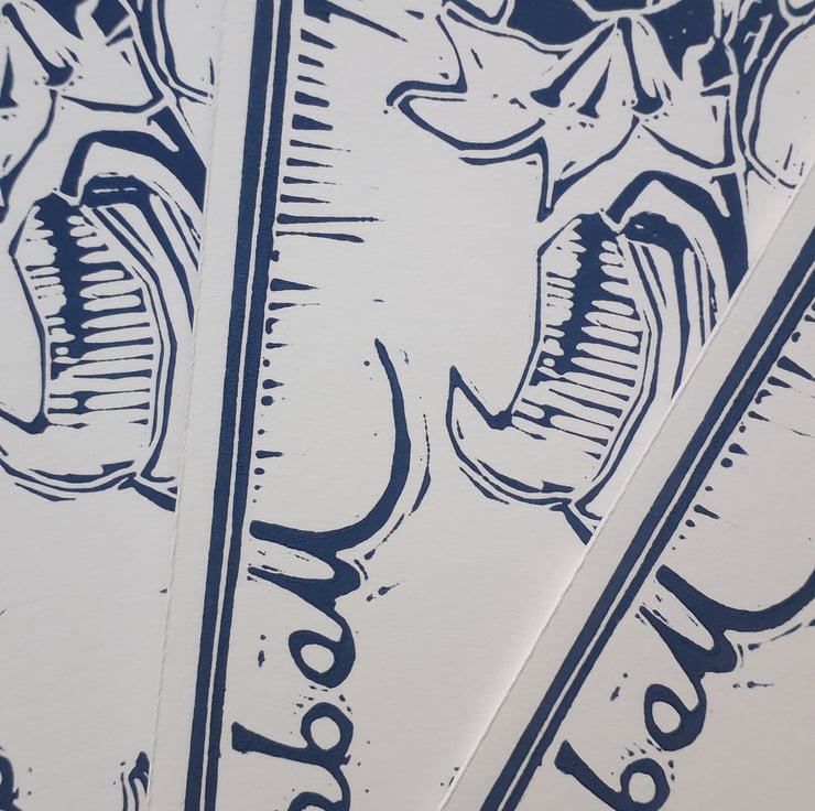 These postcards feature the only remaining prints of one of my earliest bluebell lino tiles.