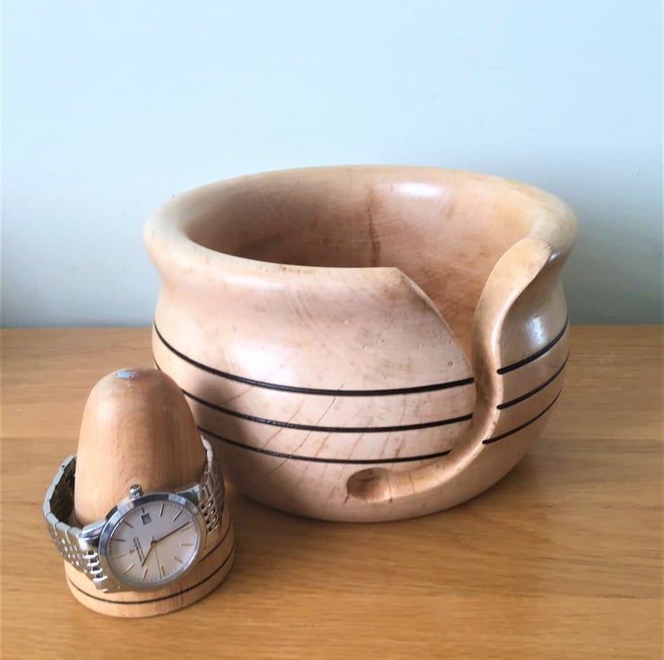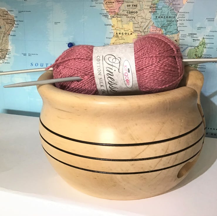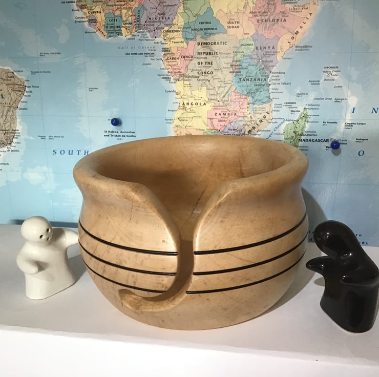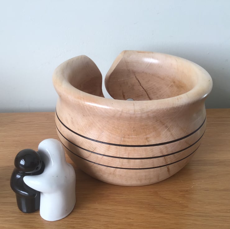 For the discerning knitter, this larger sized yarn bowl, designed to be stable when in use, was handmade by me, from English Poplar rescued from a roadside fallen tree. The piece has been given a protective and durable semi-gloss cellulose finish.