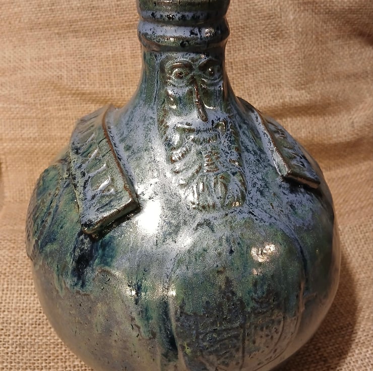 Bellarmines are very satisfying decorative and useful shapes that have a long and interesting history. I like to think I'm keeping alive the tradition of Medieval potters but re interpreting their designs and using different materials.