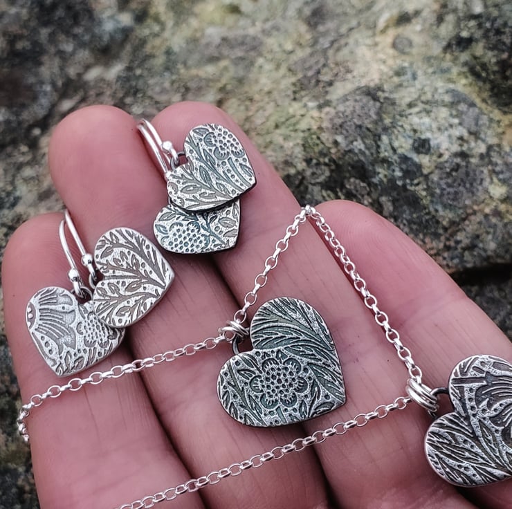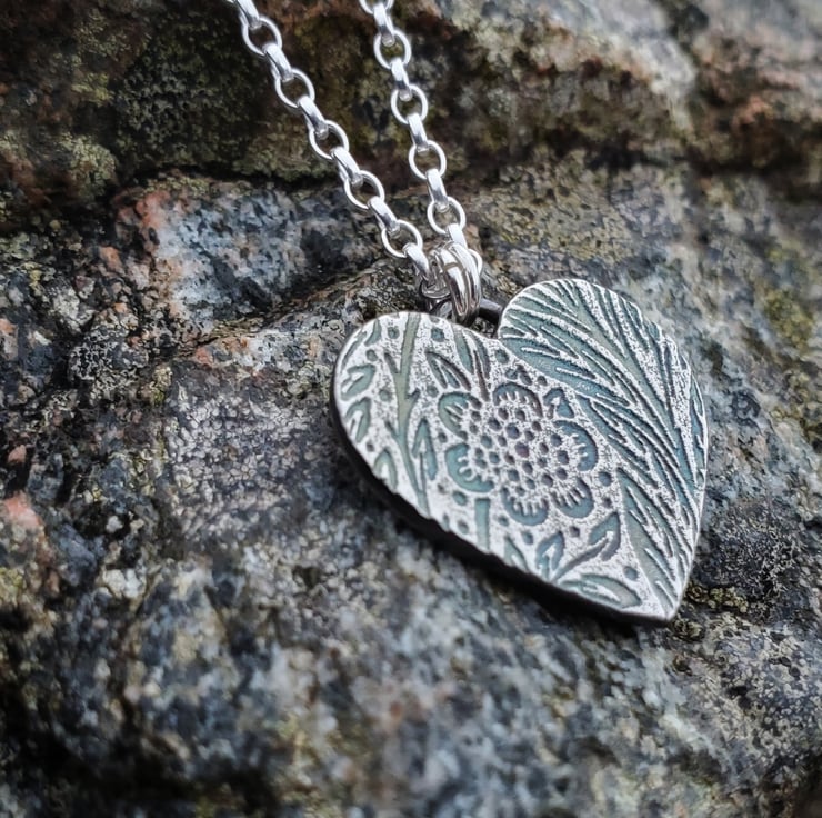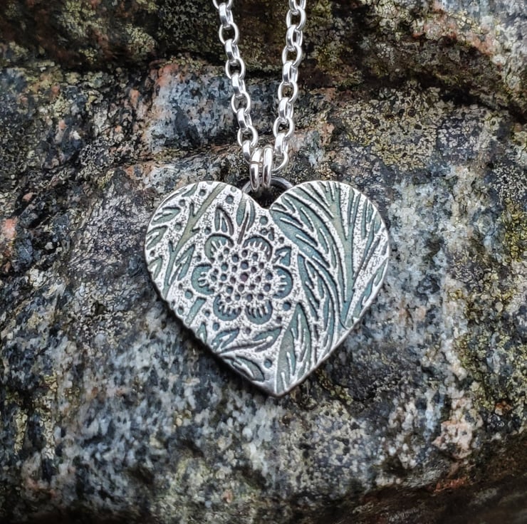 The heart measures 2cm across and has part of a William Morris design called 'Marigold' imprinted in to its surface.
