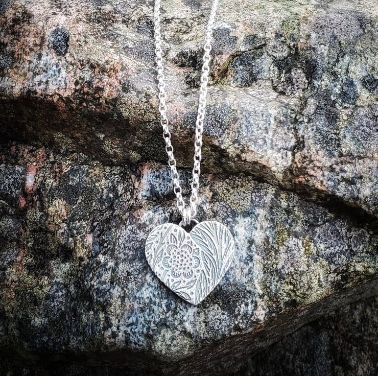This lovely heart is made from 999 fine silver and hangs from an 18 inch 925 sterling silver belcher chain.