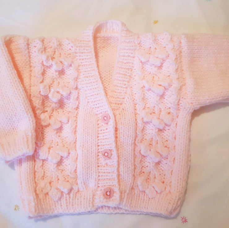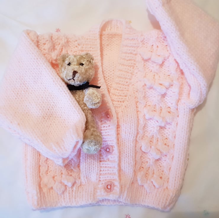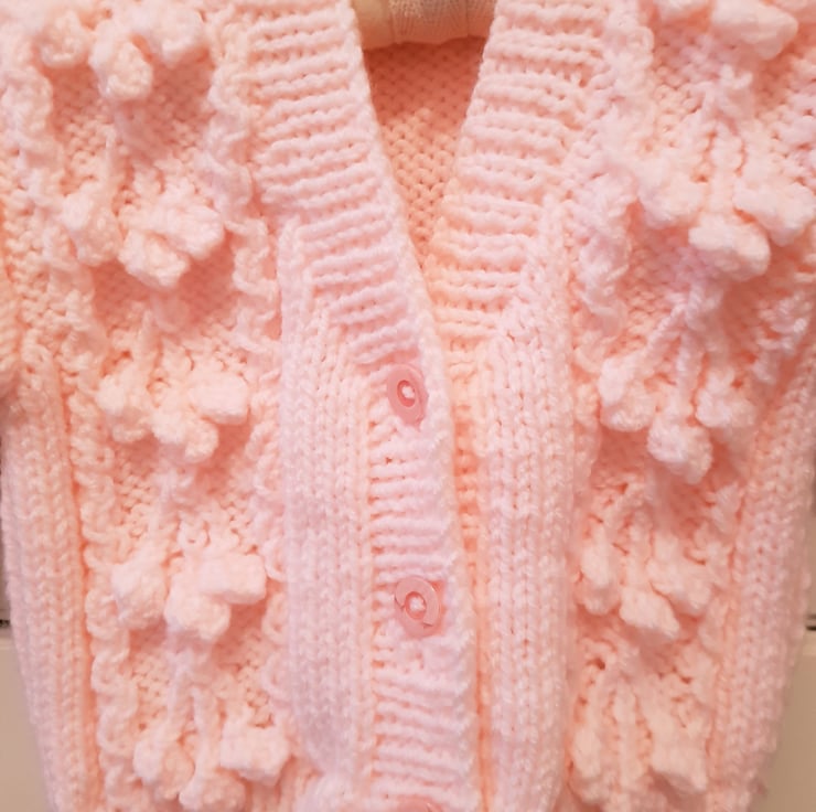 This is a beautiful,soft, cuddly hand knitted cardigan.
