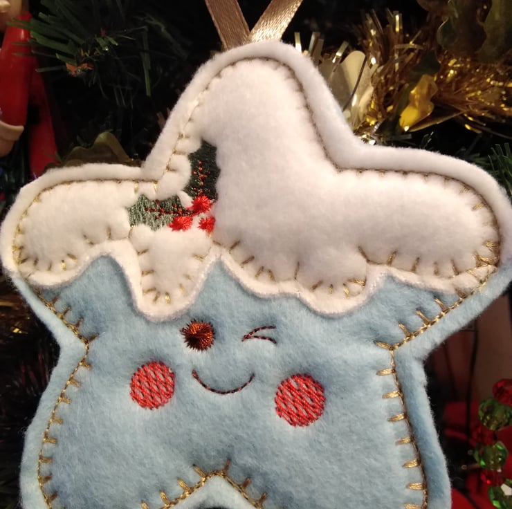 A cute addition to your Christmas Decorations. Machine embroidered.