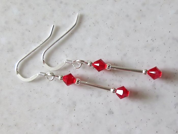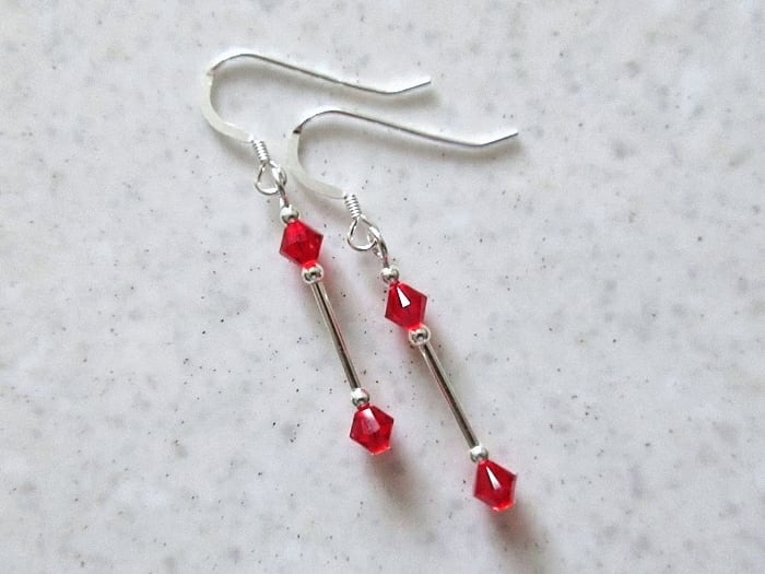 A dainty pair of Sterling Silver & bright red Crystal earrings handmade with Swarovski Crystals from the Swarovski Elements range.