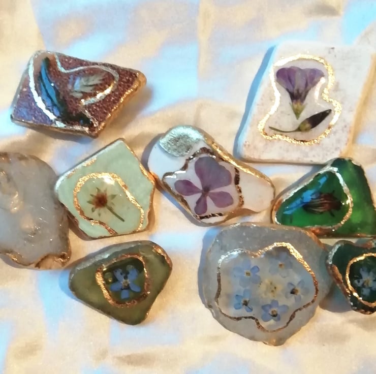 I love collecting treasures from the Kent beaches. Old broken pottery, glass and shells which has been shaped and smoothed by the sea and transforming them into lovely keepsakes.