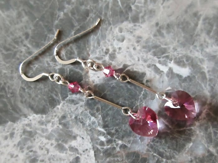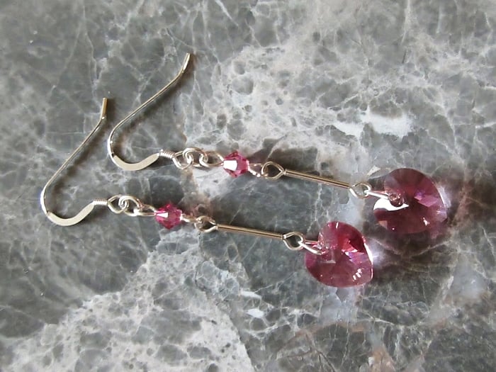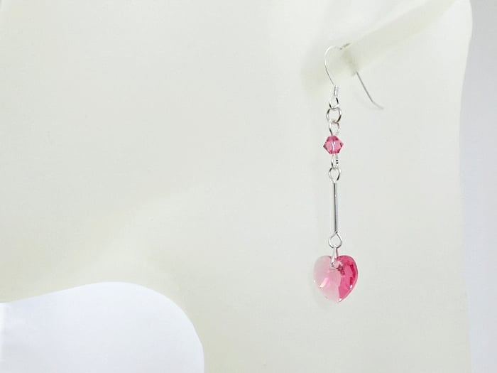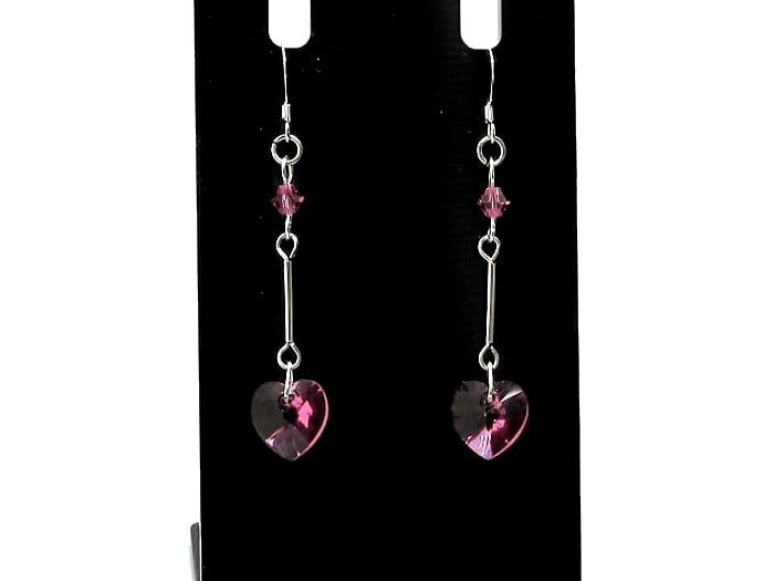 Each heart Crystal is attached to a Sterling Silver tube & in turn, a matching bicone shaped Swarovski Crystal at the top.