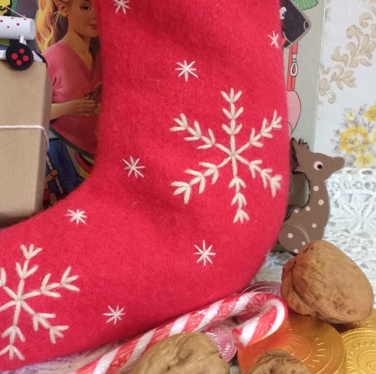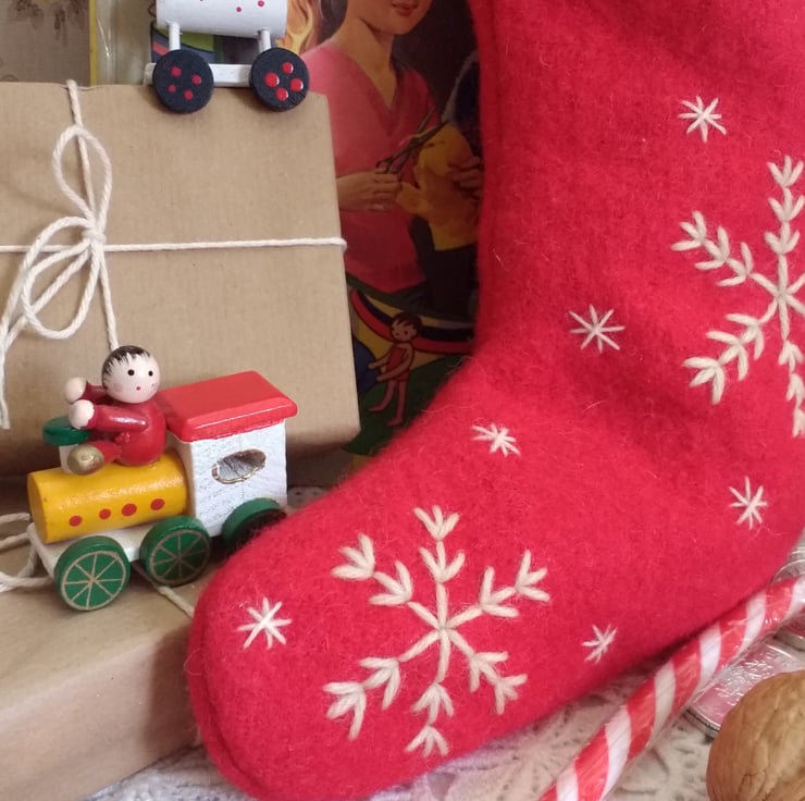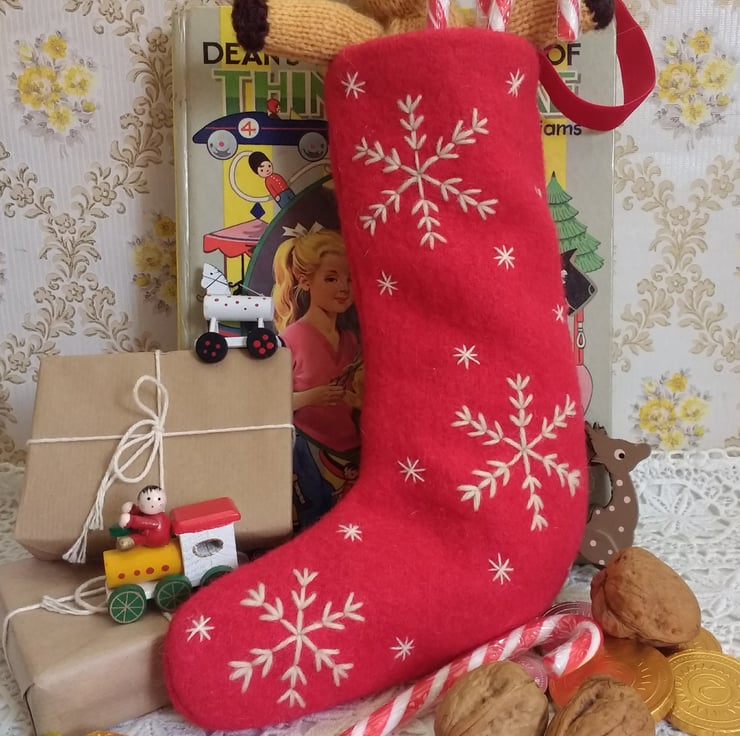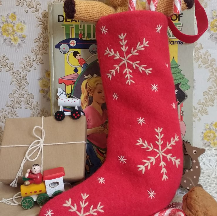 Made from a beautiful soft and warm vintage red wool blanket this sweet little stocking is perfect for a simple celebration, it's also an ideal gift for lovers of the vintage aesthetic.