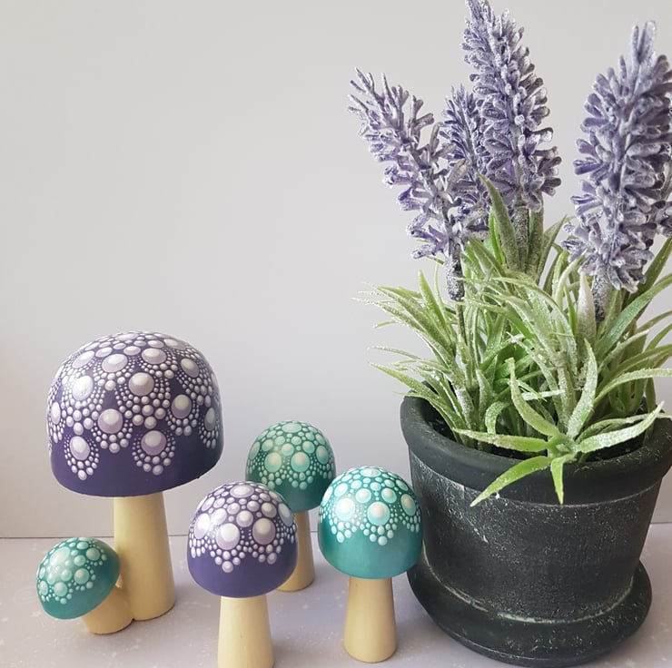 Hand painted in a mix of metallic and matte acrylic paints, and finished with a satin varnish.