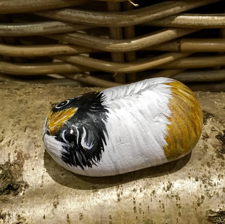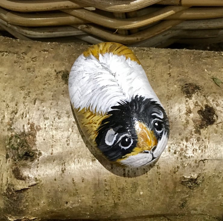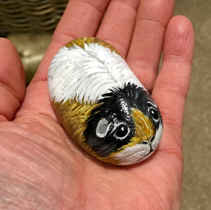 This guinea pig has been painted onto a smooth stone and glazed for a glossy protective finish