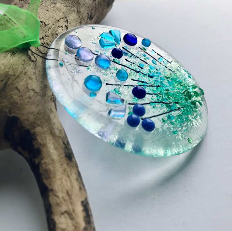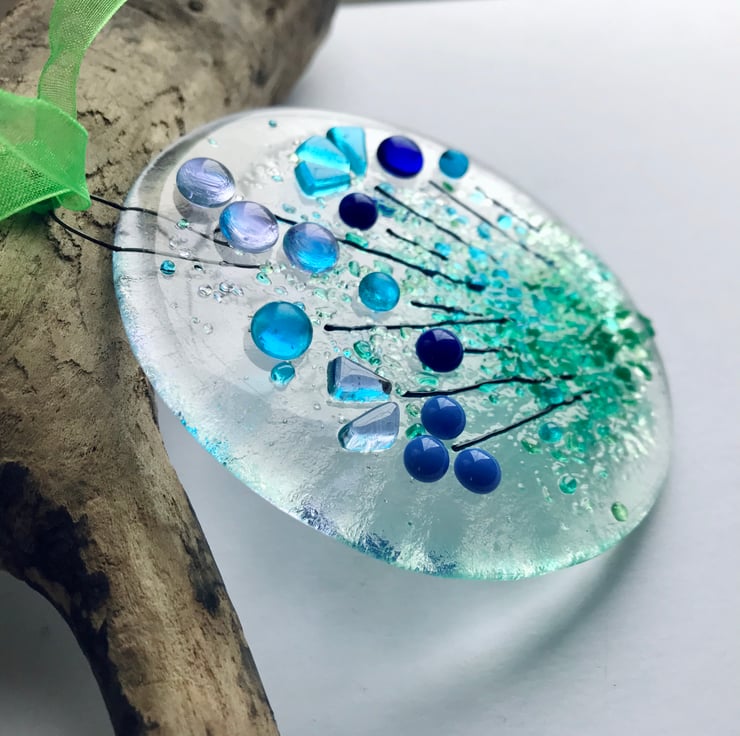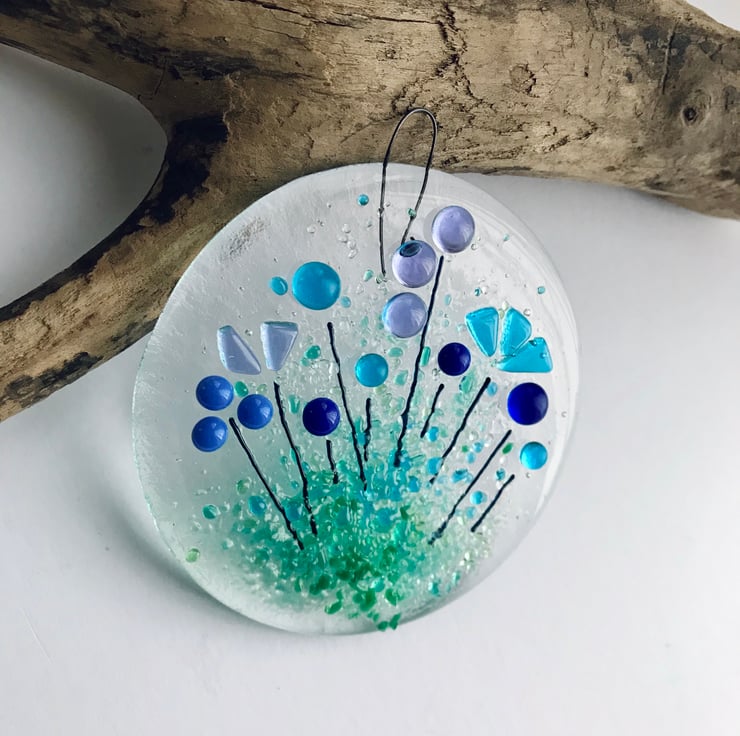 This fused glass floral suncatcher is handmade by me in my Yorkshire studio. It is very pretty especially when the glass glints in the sun.