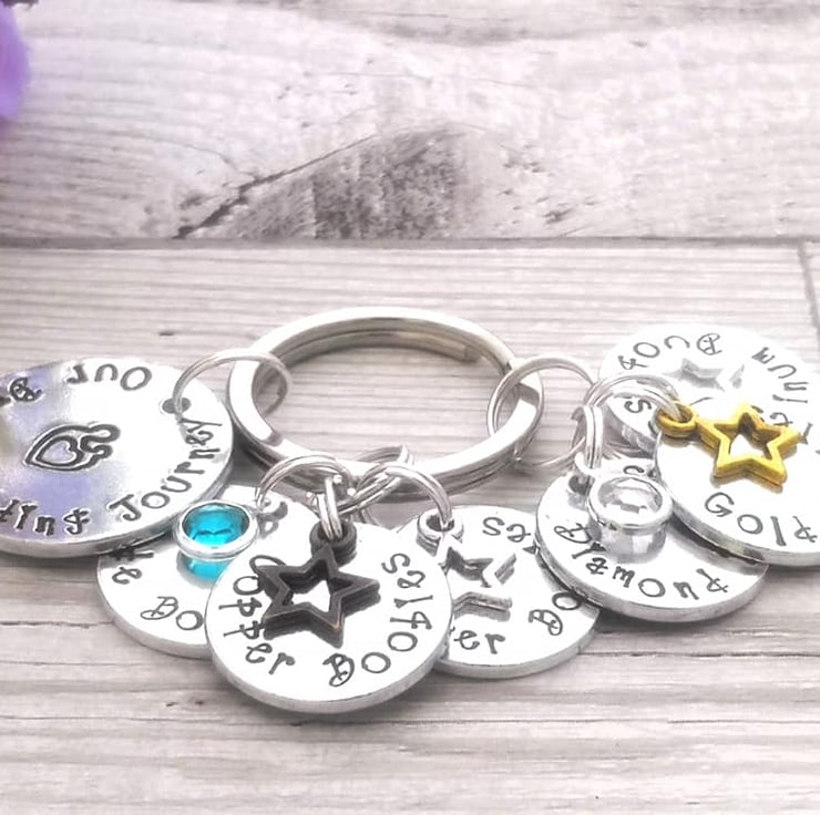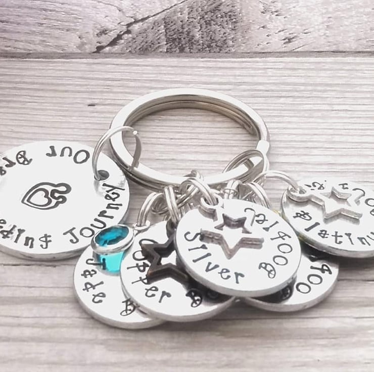 This keyring can be customised with the breastfeeding milestones both Mum and each baby have reached.