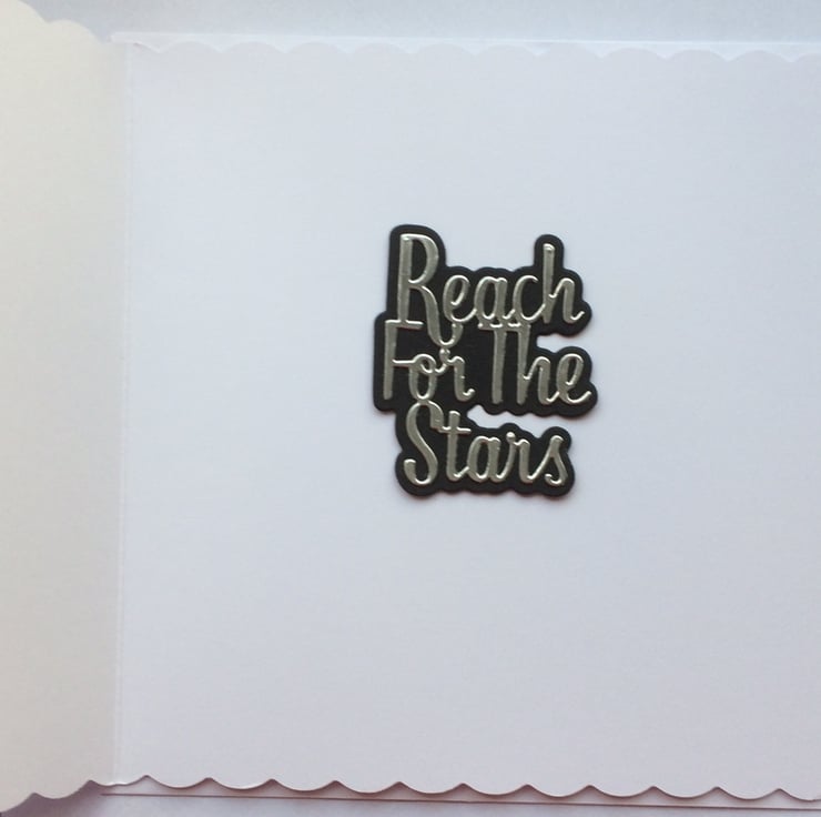 The inside of the card can be left blank or it can be embellished with a 3D sentiment. The photo shows the card with "Reach For The Stars" as an example of a 3D sentiment.