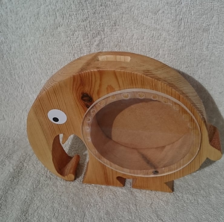 With Christmas just around the corner why not give your young ones an encouraging start to the new year with this Elephant money box. Children love animals and love to see their savings growing through the perspex panel and when it's time to take the money to the bank Mum or Dad will have to unscrew the back panel to get the money out.