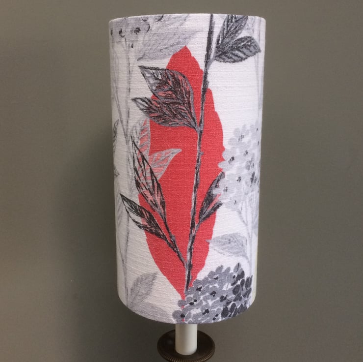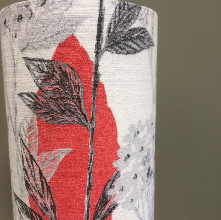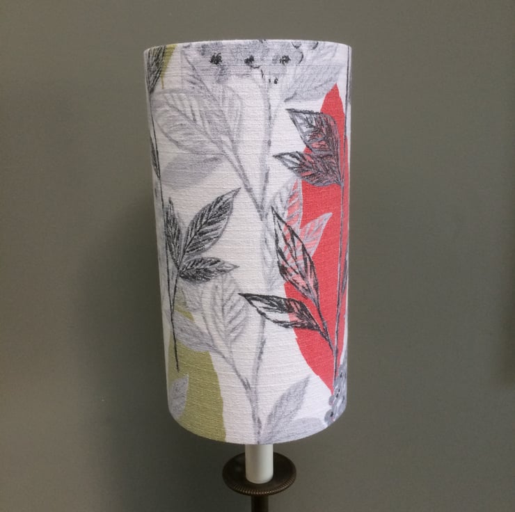 Stylish 50s MID CENTURY MODERN Grey Botanical VIntage Barkcloth Fabric Lampshade option .