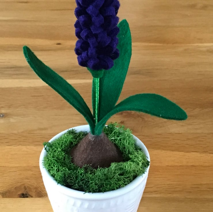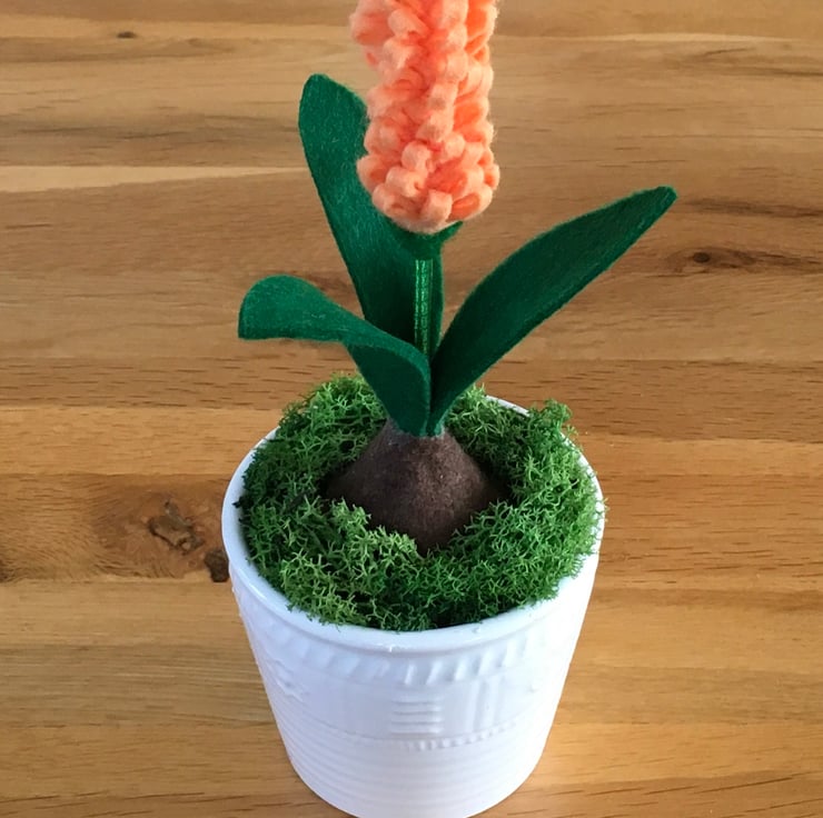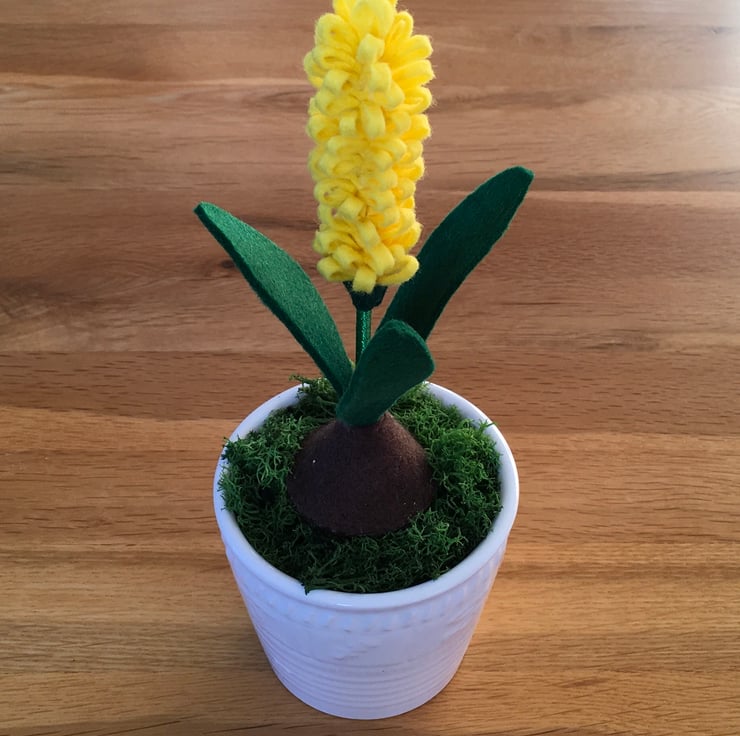 A vey life like Hyacinth bulb in a pot. This lovely handmade decoration is perfect for any room in the house. The main material used in this decoration is Wool Felt. It will make a great gift especially at Easter time or as a Mother’s Day Present, Birthday present etc.