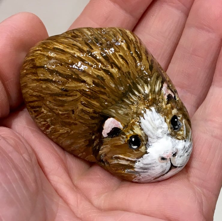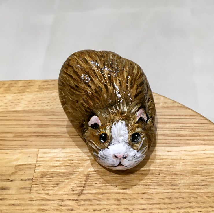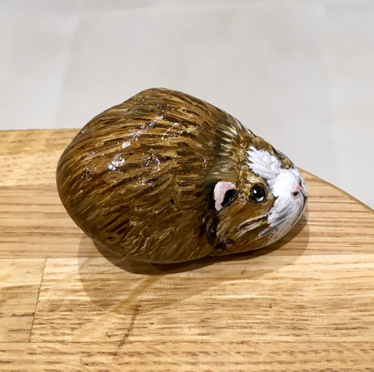 This guinea pig has been painted onto a small garden stone and glazed for a glossy protective finish. Ideal unique gift for animal lovers