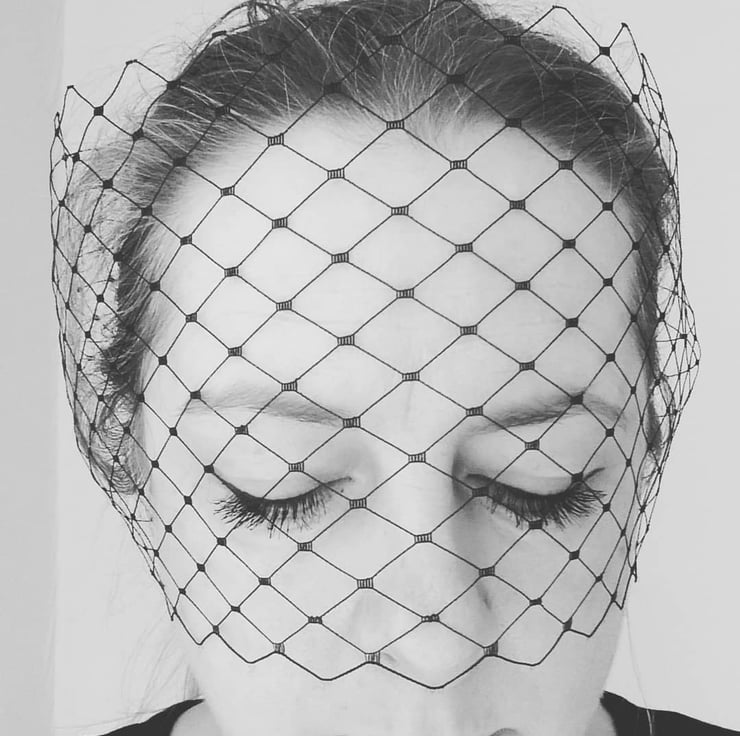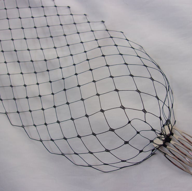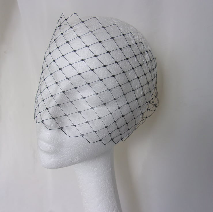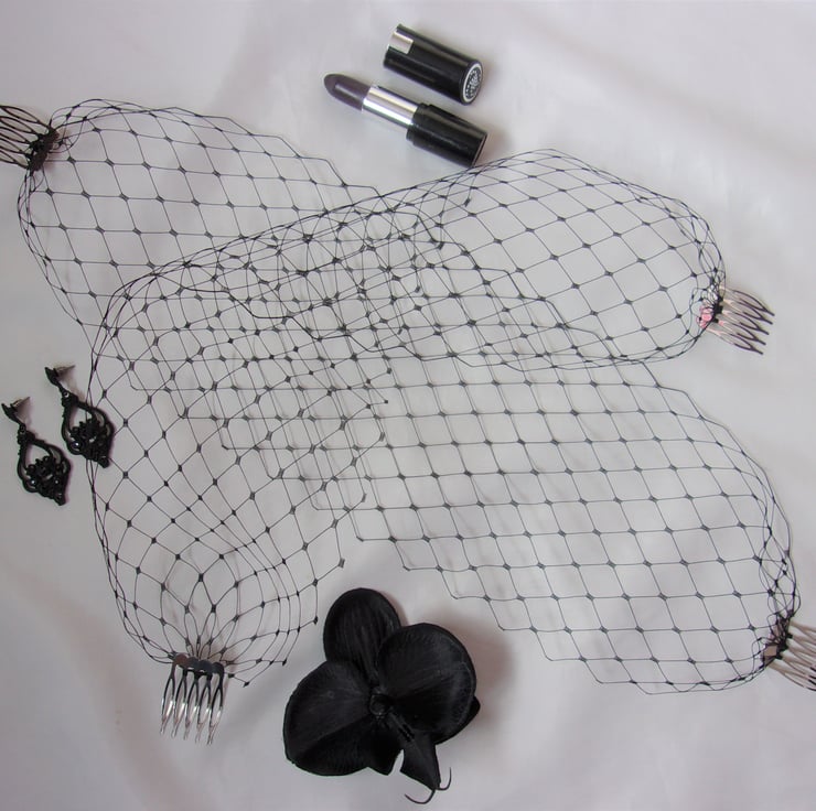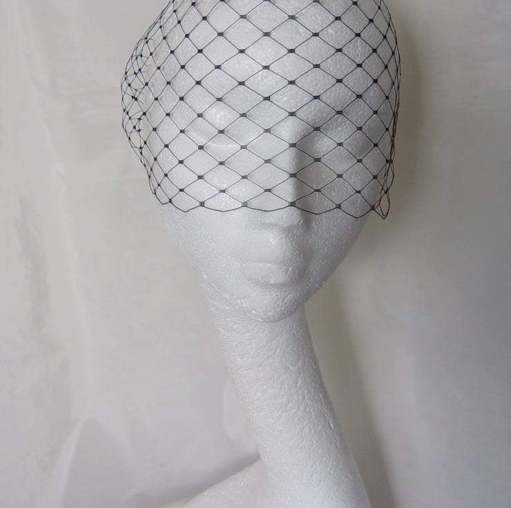 This is a stunning narrow style eye bandeau veil in black merry widow veiling.