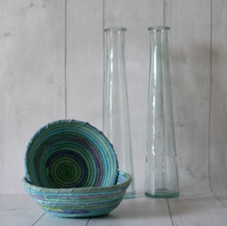 This listing is for the larger of the two coil bowls photographed, which measures approximately 16cm in diameter and 6cm in height.