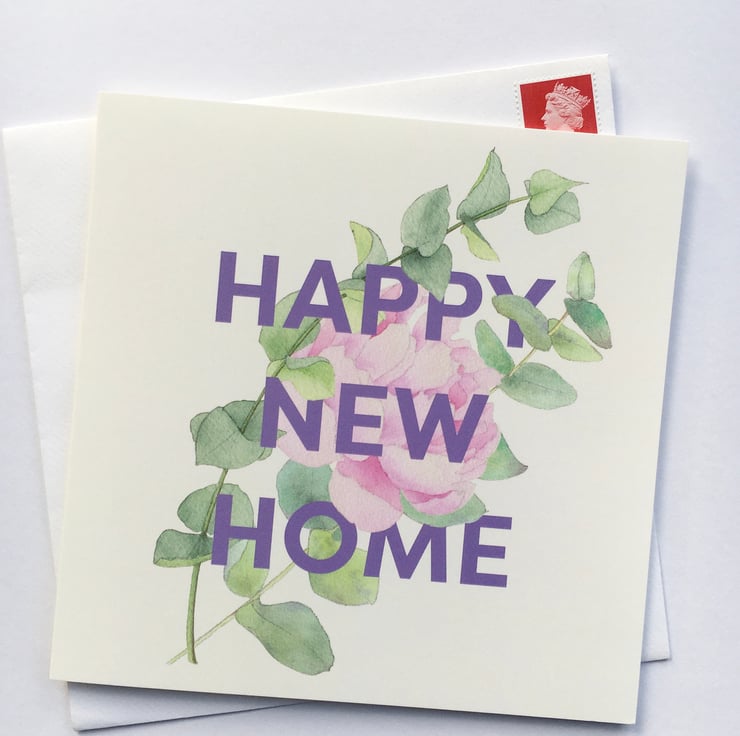 The card features a watercolour design of a pink peony surrounded by eucalyptus leaves which seem to twine around the letters. (The peony apparently symbolises good luck and prosperity, which I didn't know at the time of painting it, but perhaps it was a lucky choice.)