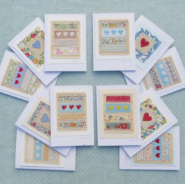 These little bargains are always popular! Suitable for any number of occasions, made using the tiniest pieces of my most favourite fabrics, combined to make a unique little piece of hand-stitched textile art - definitely a card to keep!