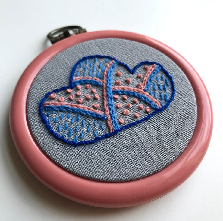 The embroidered hoop is posted wrapped in tissue and popped into a card envelope.