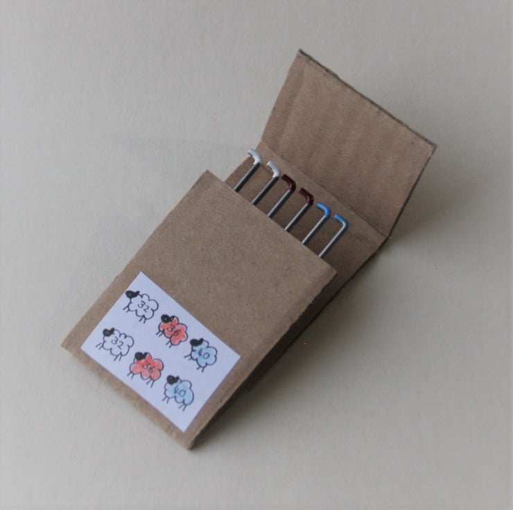 To reduce plastic, these needles are packaged in a recycled cardboard sleeve.