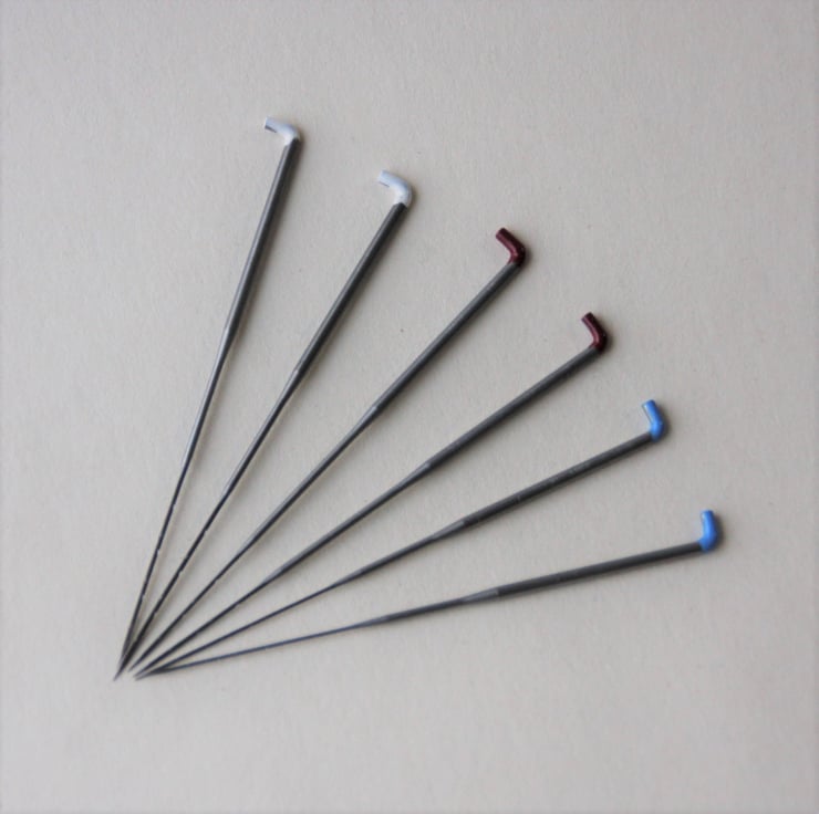 Two LIGHT BLUE 40 gauge (FINE) needles - good for finer details and for finishing work