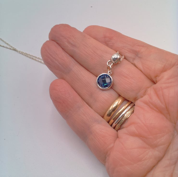 This stunning Sterling Silver Cubic Zirconia birthstone pendant would go well with any outfit that you wear for a party or other special occasion. It would make an ideal gift for someone special for a birthday or anniversary or a lovely treat for yourself. The pendant is made using a sterling silver cubic zirconia connector in the colour of your choice (Please see below for the birth month colour options). The pendant is suspended on a sterling silver rope chain secured with a sterling silver lobster clasp. The necklace is 18 inches (45.25 cm) long and the pendant has a 0.75 inch (1.25 cm) drop from the chain. If you require the chain in a different length please leave a message when you order. The options for the birth month colour are as follows, please select the month required from the drop down box:
