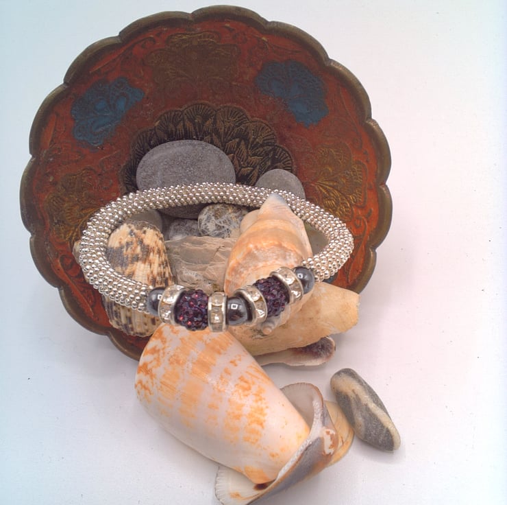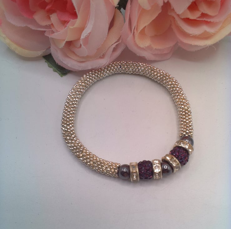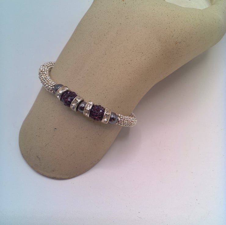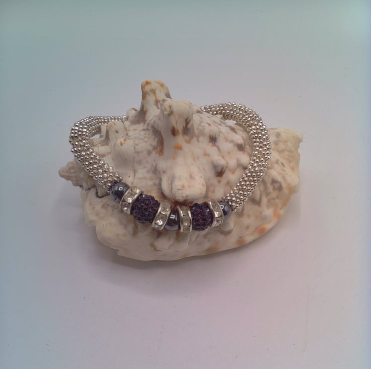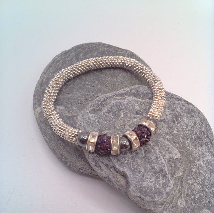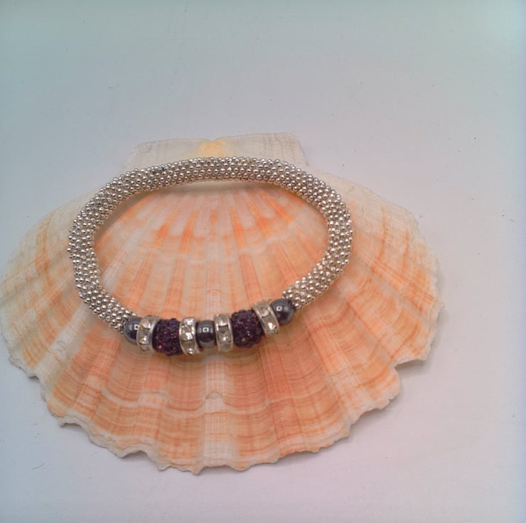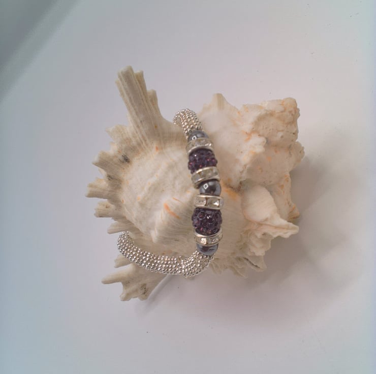 This pretty bracelet would match well with any outfit for a party or any other special occasion. It would make an ideal gift for a bridesmaid or flower girl, a birthday or anniversary for someone special, or a lovely treat for yourself. The bracelet is made using 6 mm silver plated snowflake spacers, 6 mm pave beads coloured to match your given birthstone and 6 mm haematite beads all threaded onto jewellers elastic. Please select your chosen birth month from the drop down menu on the right. The bracelet measures 16 cm in its unstretched state and will comfortably fit a wrist that is 16.5 - 17 cm in circumference. If you require a different length bracelet please state this in a note when you order. The bracelet will be dispatched wrapped in tissue paper in an organza bag and delivered to you via Royal Mail first class post.