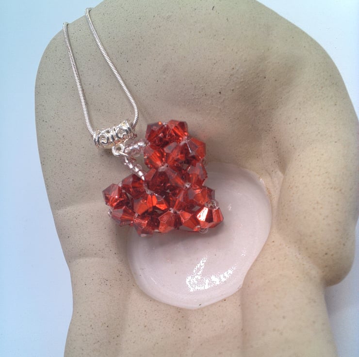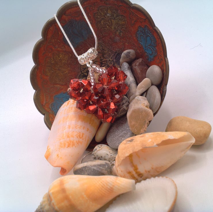 This gorgeous glass crystal heart pendant on a sterling silver snake chain would match well with any of your Spring or Summer outfits that you wear for a day out or an evening get together. It would also make a lovely gift for your friends or relatives for a birthday or anniversary or as a confirmation gift. It would also make a perfect treat for yourself. The crystal heart is made by hand sewing the 6 mm crystal bicone beads and seed beads into the heart shape. The colour of the crystals represents the birthstone colour for your chosen month. Please select the required birthstone colour from the first drop down box above. The sterling silver snake chain is 16 inch in length but if you require a longer 18, 20 or 22 inch chain please request in the second drop down box above. The necklace will be dispatched wrapped in tissue paper and delivered to you via Royal Mail first class post.