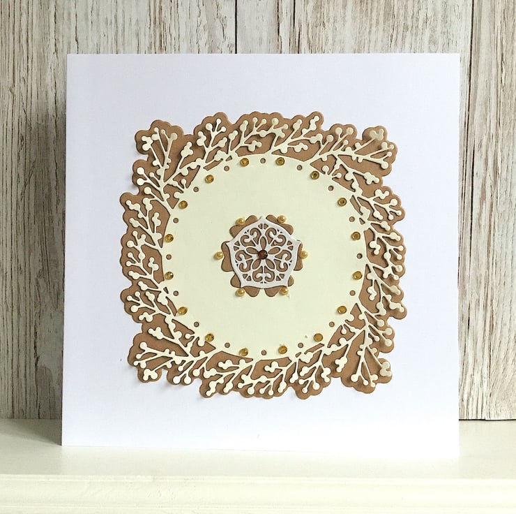 Birthday card - large size handmade birthday card cut from quality gingerbread, pearlised ivory and cream cardstock.