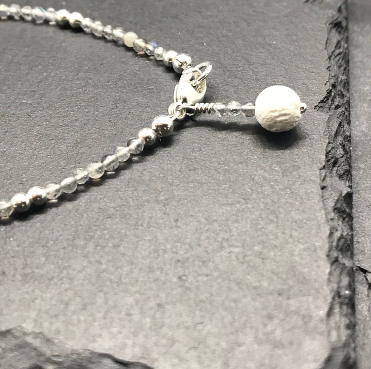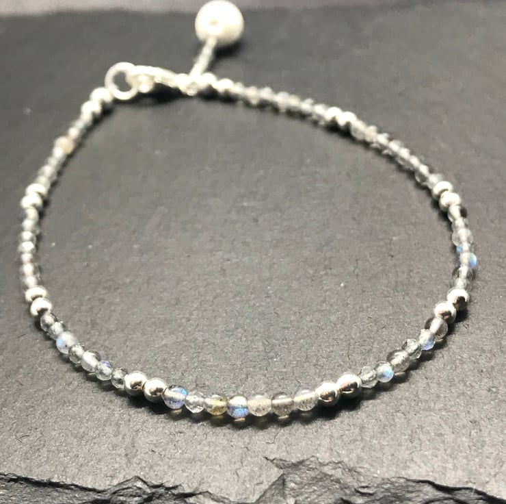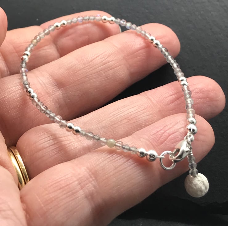 This bracelet is made with tiny Labradorite stones and tiny Sterling silver beads.