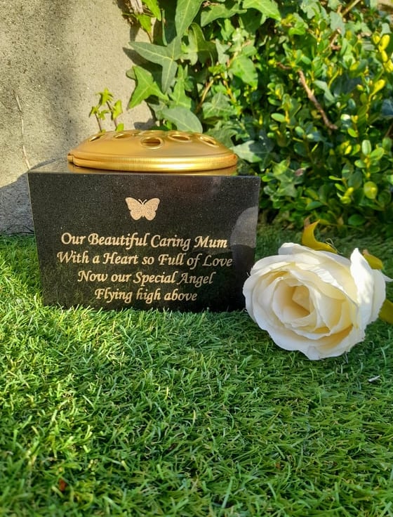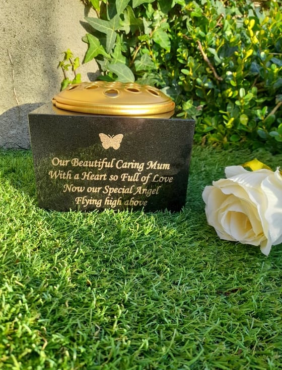 This listing is for a Black Highly polished Solid Granite Grave Vase.