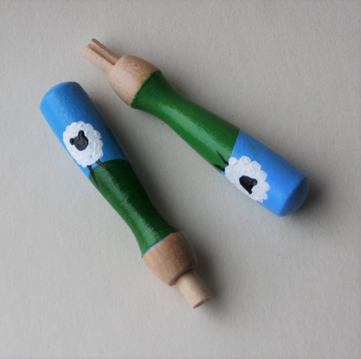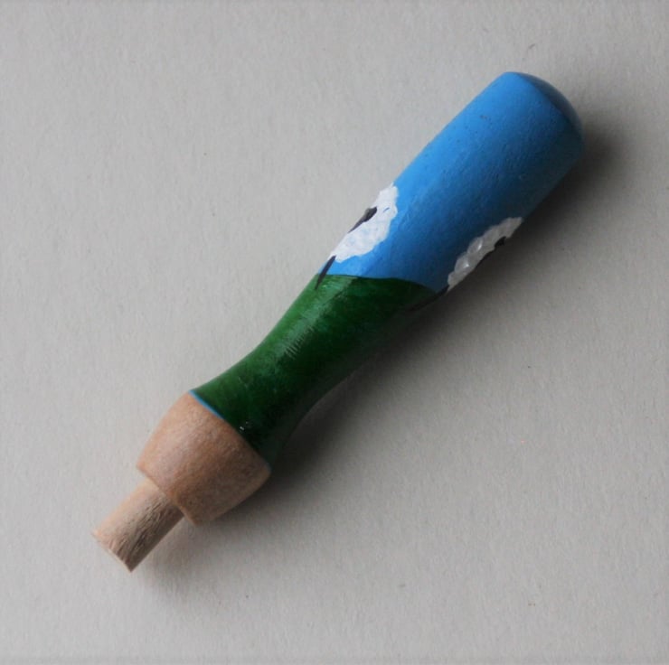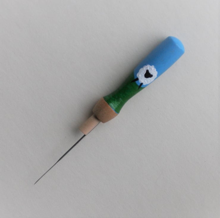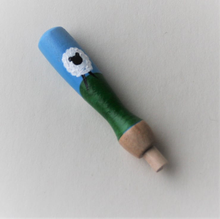 Hand painted, wooden needle grip holder for use with needle felting needles with fun sheep design. A perfect gift for your felting friends or as a treat for yourself.