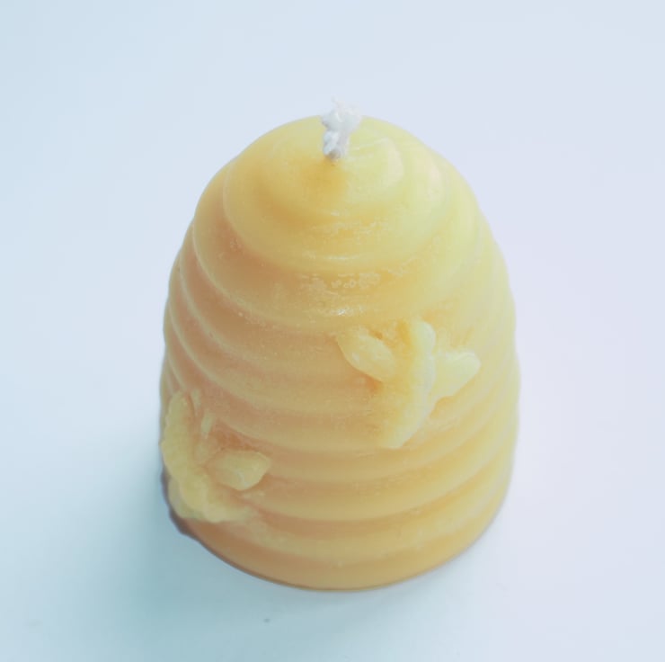 Small beeswax hive candle handmade in mid Wales from Soil Association Certified organic beeswax.