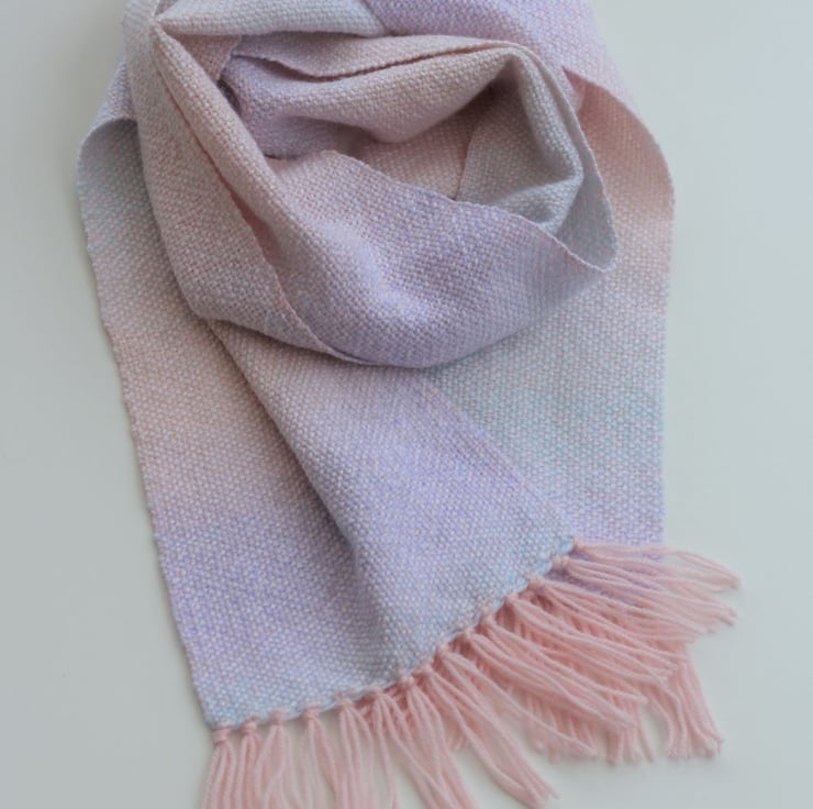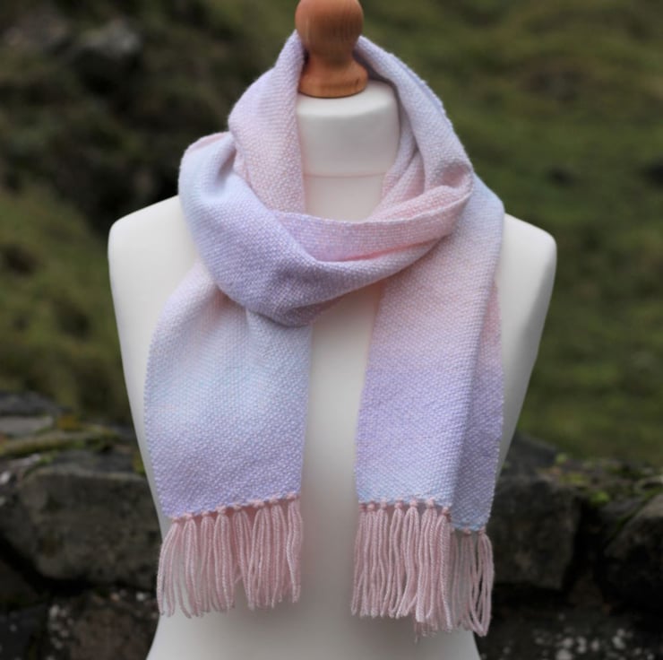 This scarf has been handwoven from a baby soft yarn so will be comfortable to wear.
