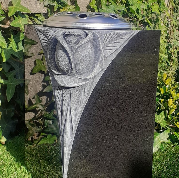 This listing is for a Black Highly polished Solid Granite Grave Vase.