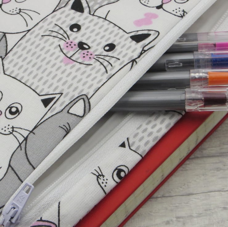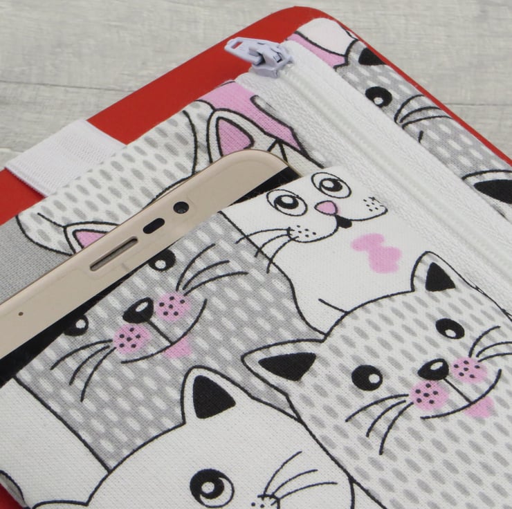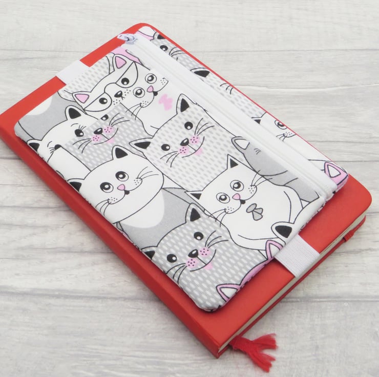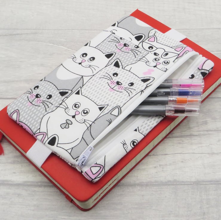 This planner pouch with a zipped pocket and elastic band, which safely and snugly attaches it to the front of your planner, is made from cotton fabric with the most adorable pink and grey cat characters on. Perfect fabric for cat lovers. Not to mention that this bullet journal pouch is the perfect gift for anyone who loves keeping a journal. The front zipped pouch is a brilliant addition to your bullet journal or planner. It has a waterproof fully lined pocket which is just right to store your bullet journal supplies like pens, pencils, washi tape, stickers, clips or stamps safely. Keep your pens and supplies right where you need them....with your planner.