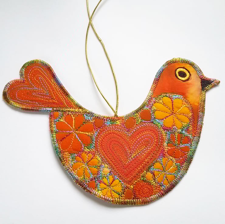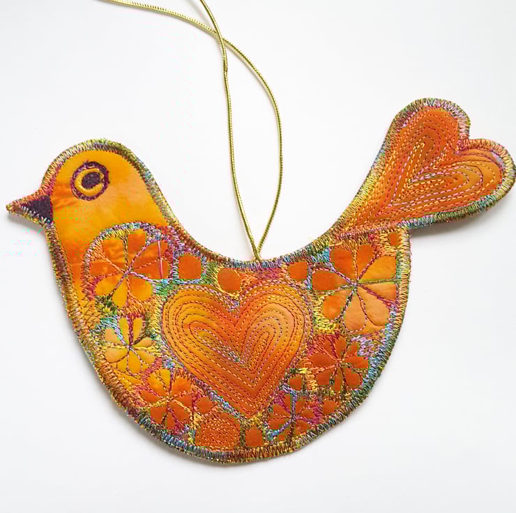 Made from layers of fabric including hand dyed Egyptian cotton and silk fabrics using the free machine embroidery style of sewing