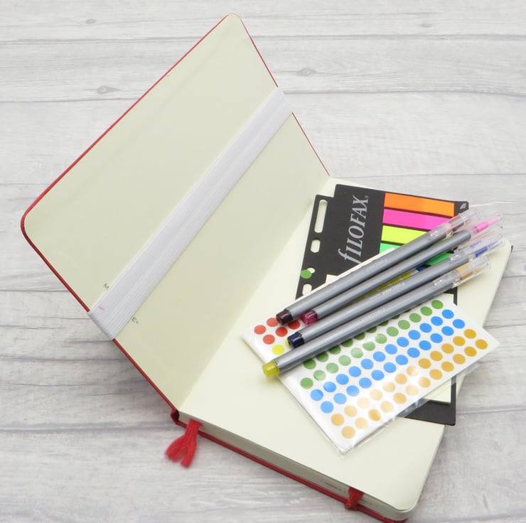 Moleskin Planner shown 8.5 inches x 5.5 inches (not included - shown for illustration purposes only)
