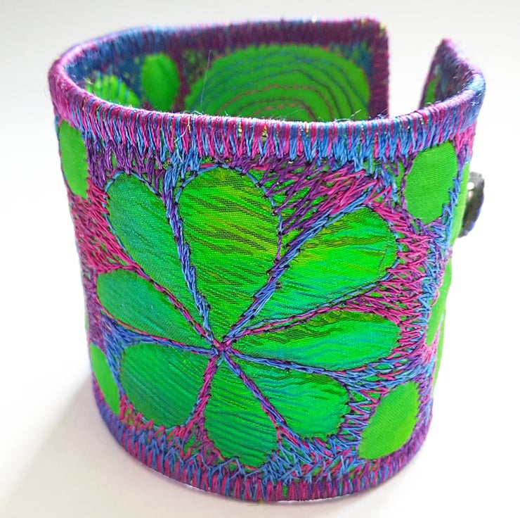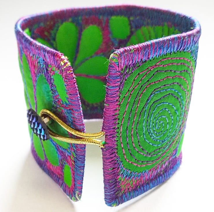It has a beautiful button and an elasticated closure so it will stretch to fit a slightly larger wrist