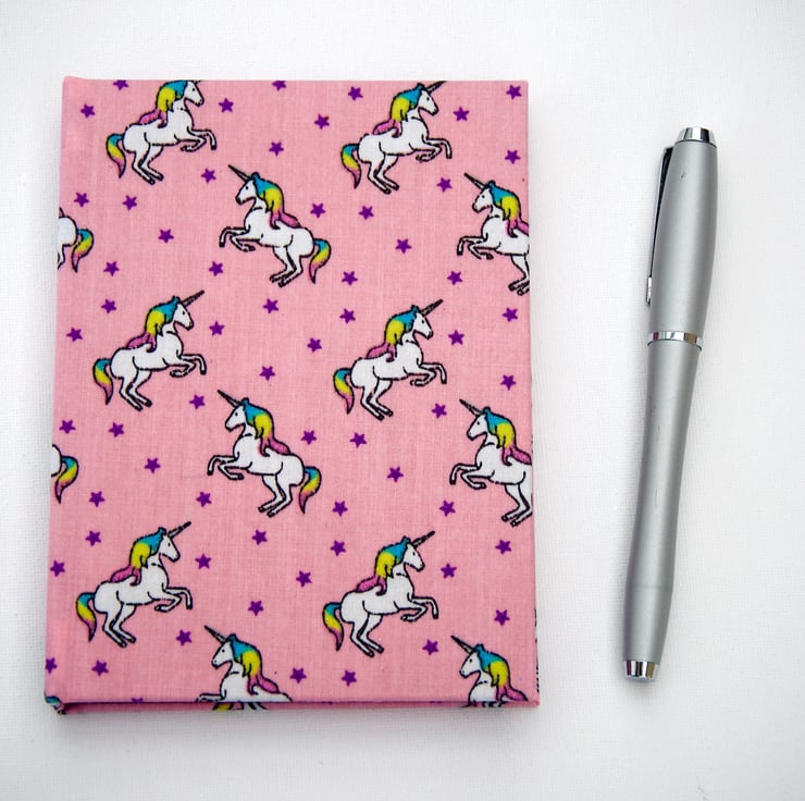 A6 Hardback Notebook with full cloth unicorn cover