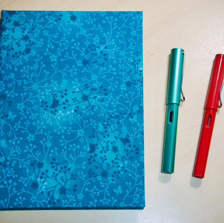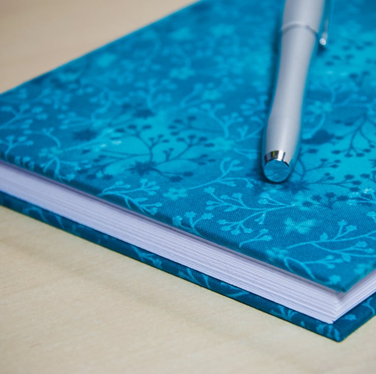 A5 Hardback Lined Notebook with full cloth turquoise flower cover