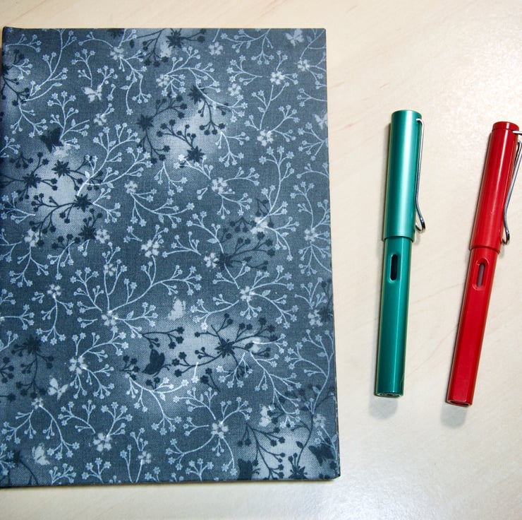 A5 Hardback Lined Notebook with full cloth grey flower cover