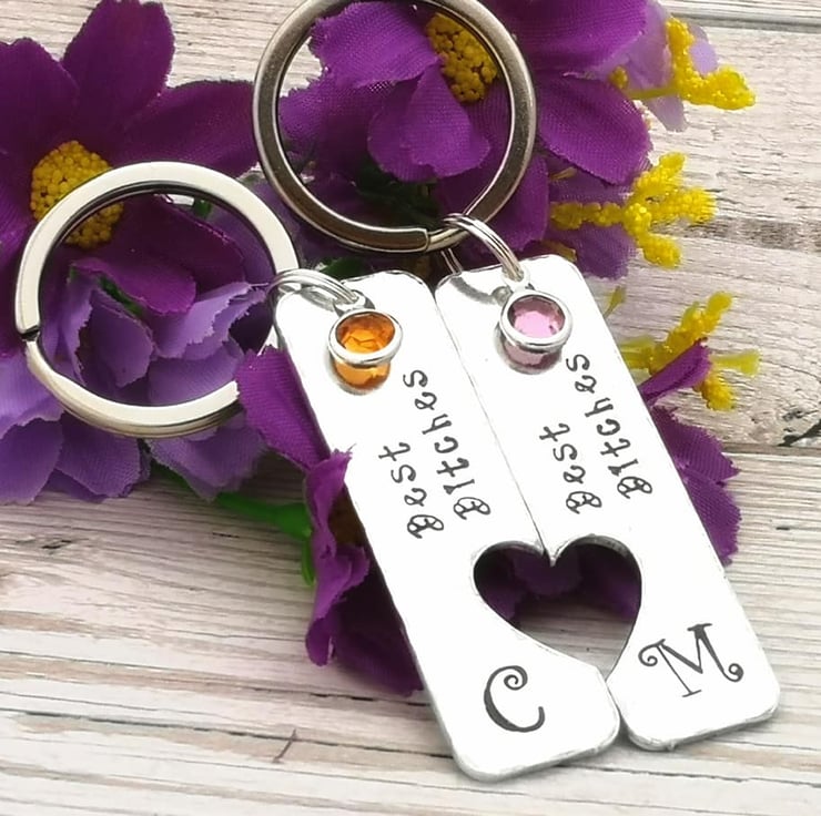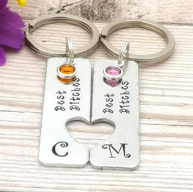 Remind your best bitch just how special they are with this personalised pair of keyrings with a birthstone crystal on each.