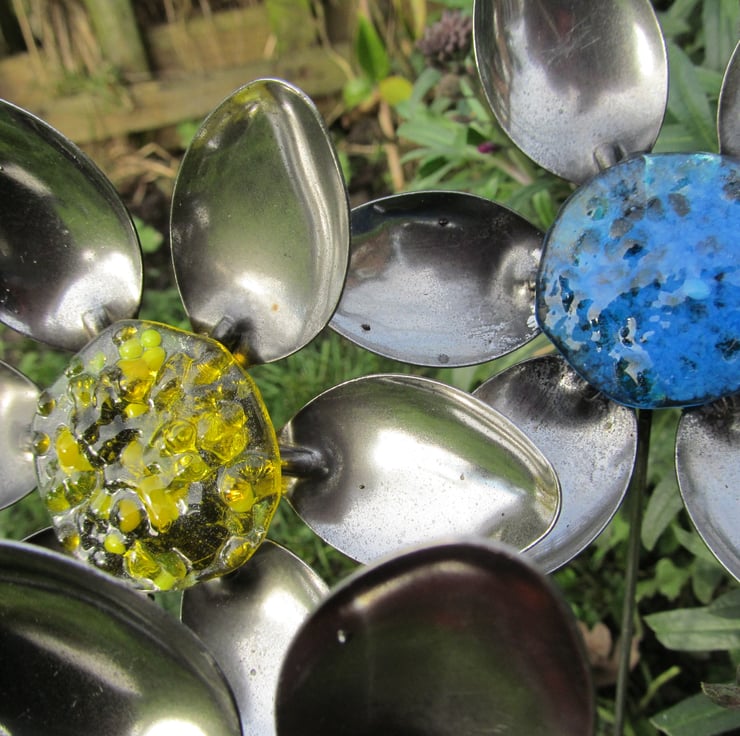 Metal Spoon Flowers with Fused Glass Centres