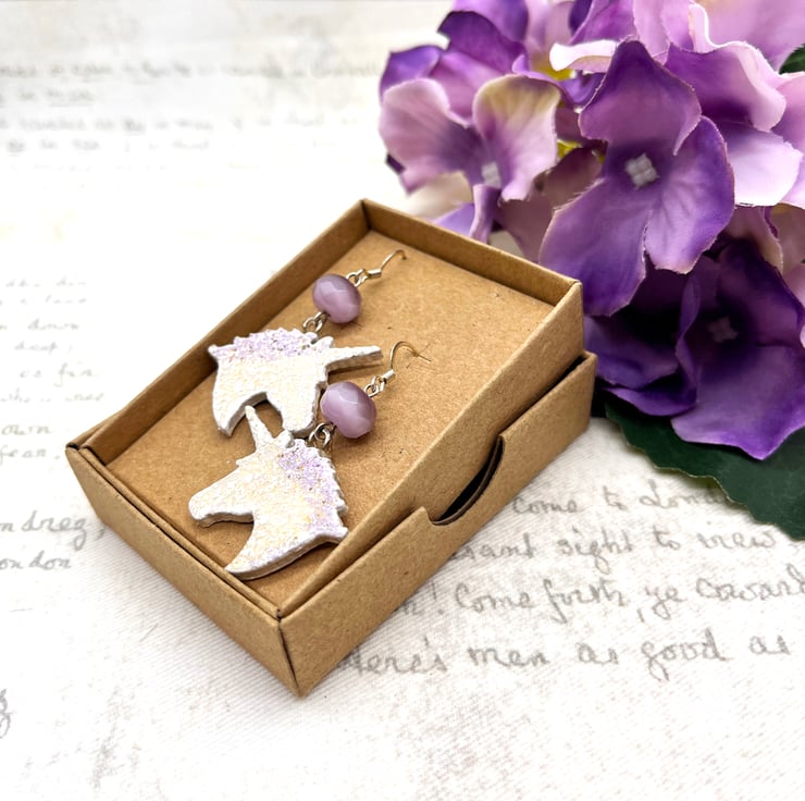 These earrings will come to you safe and carefully packaged in a UK Made eco-friendly recycled kraft card jewellery box - perfect for gifting to that unicorn lover (or as a treat for yourself!)