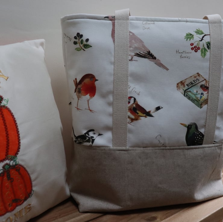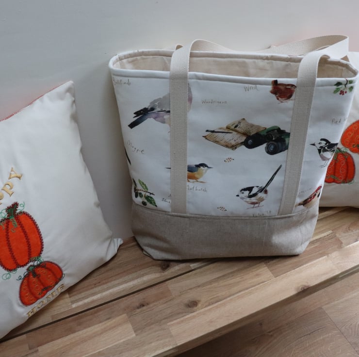 100 % cotton, the Lining is Calico and the base of the bag is hessian.